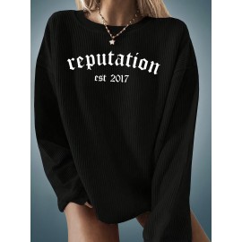 Plus Size Cartoon Print Crew Neck Pullover Sweatshirt - Soft Slight Stretch Polyester Material, Casual Long Sleeve Fall/Winter Wear, Hand Wash Only, Positioning Printing, Knit Fabric - Womens Cozy Autumn/Winter Casual Clothing