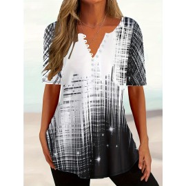 Plus Size Rhinestone Decor T-Shirt, Casual Cold Shoulder Short Sleeve T-Shirt, Women's Plus Size Clothing