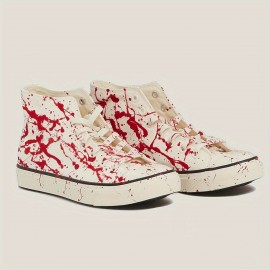 Men's Cartoon Cat Sneakers - Casual Lace-Up Canvas Shoes with Rubber Sole and Fabric Insole, Round Toe Preppy Style, All-Season Comfort for Daily Wear