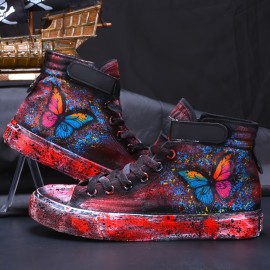 Men's Creative Pattern Design Trendy Canvas Skate Shoes, Breathable Non Slip Lace-up Shoes For Outdoor Casual, Men's Street Style Footwear