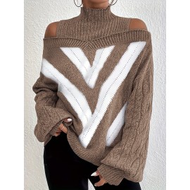 Plus Size Casual T-shirt, Women's Plus Solid Contrast Lace Panel Cold Shoulder T-shirt