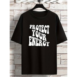 Plus Size Tees, Creative Letter Print Men's Casual Tees Short Sleeve Oversized T-Shirt Summer Loose Tops, Gifts For Man!